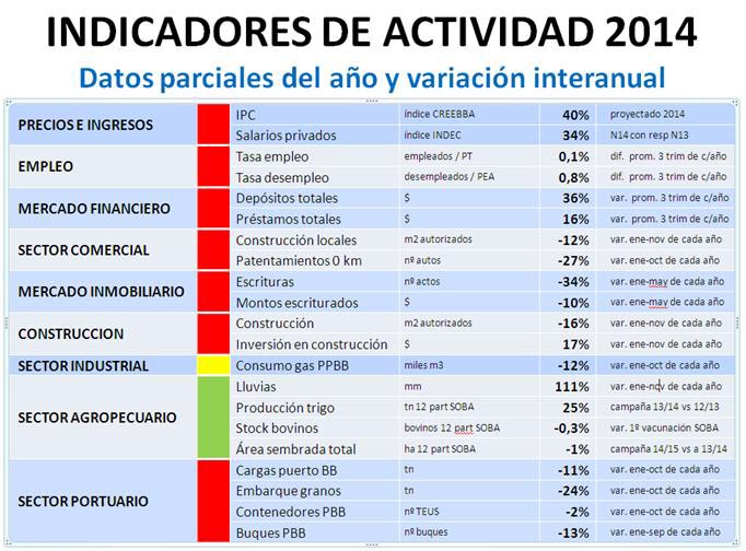 En el transcurso de la segunda mitad del año próximo se espera difundir los resultados correspondientes al año 2014. Algunos indicadores parciales permiten anticipar un desempeño negativo para la actividad económica local durante 2014. La economía local no escaparía al cuadro recesivo general observado a nivel del país. En este sentido, estimaciones privadas estiman una contracción del producto en el rango que va de -1,5% a -2,5%.